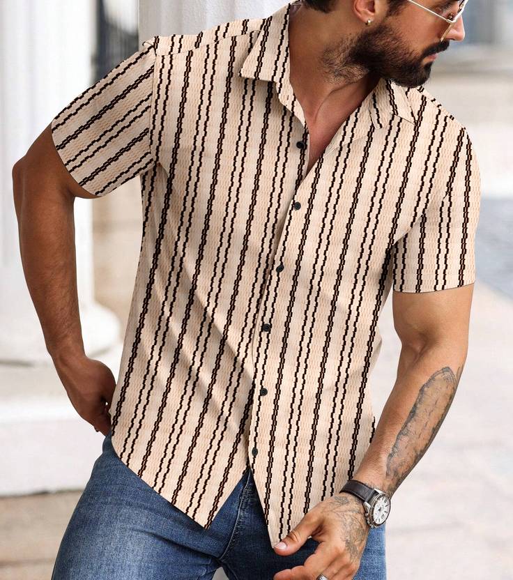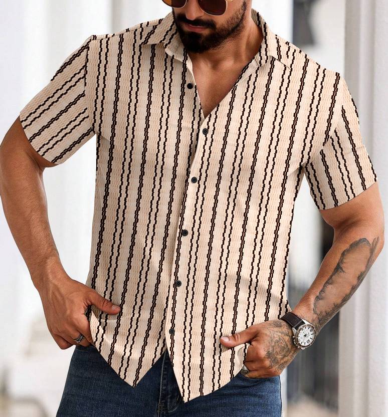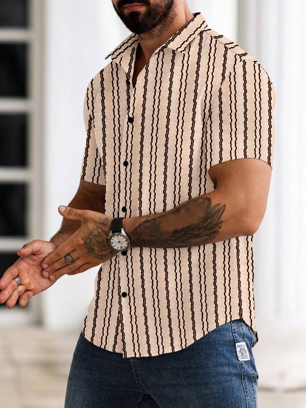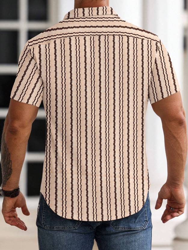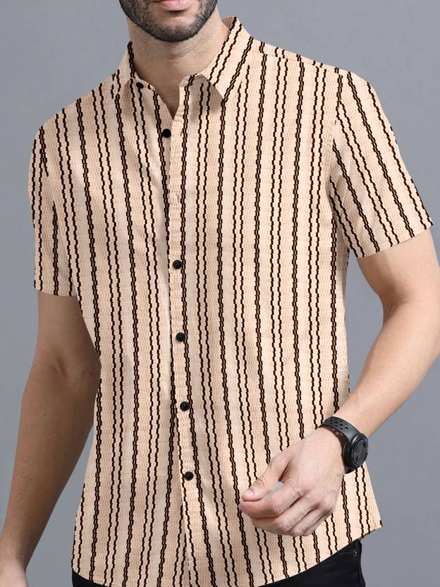 Men Regular Fit Striped Spread Collar Casual Shirt