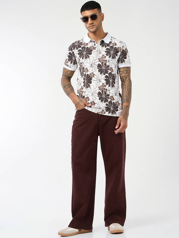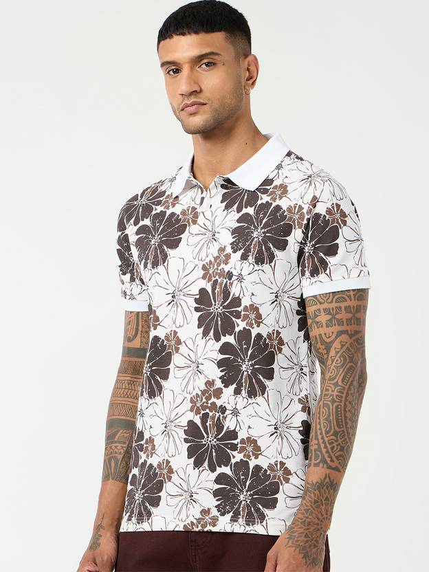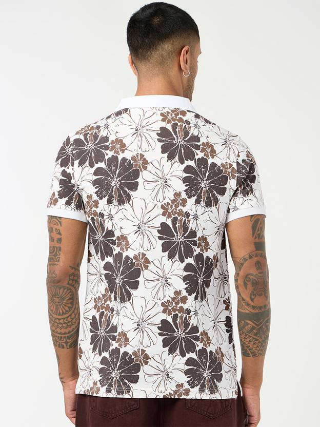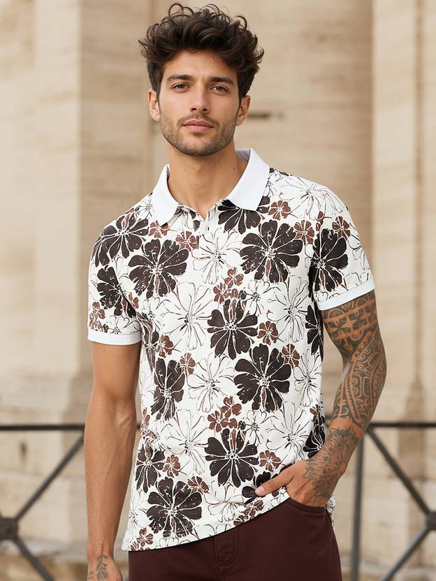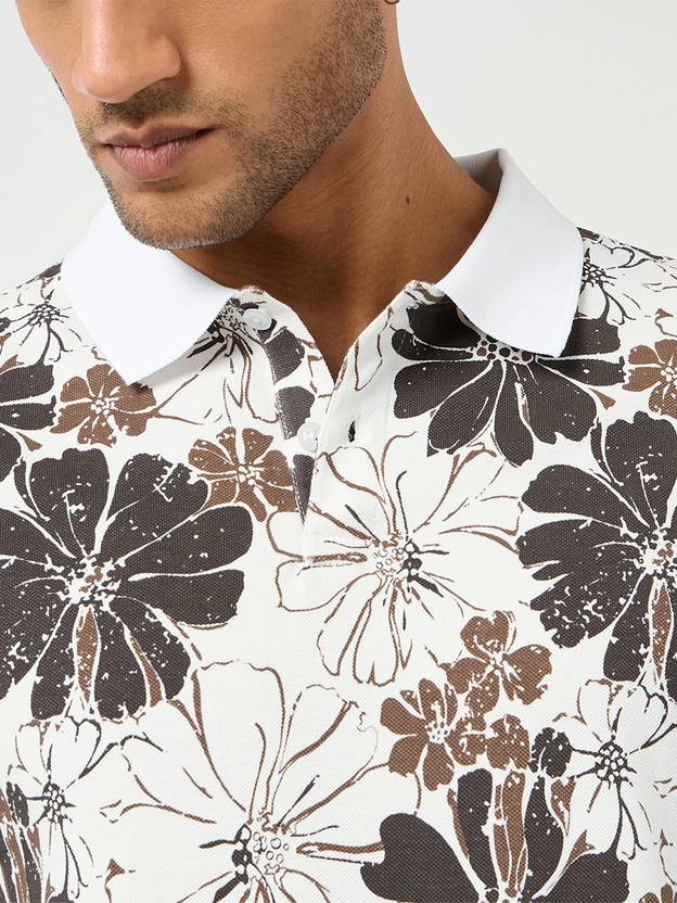 Be the first to review “Men Printed, Floral Print Polo Neck Pure Cotton White T-Shirt”